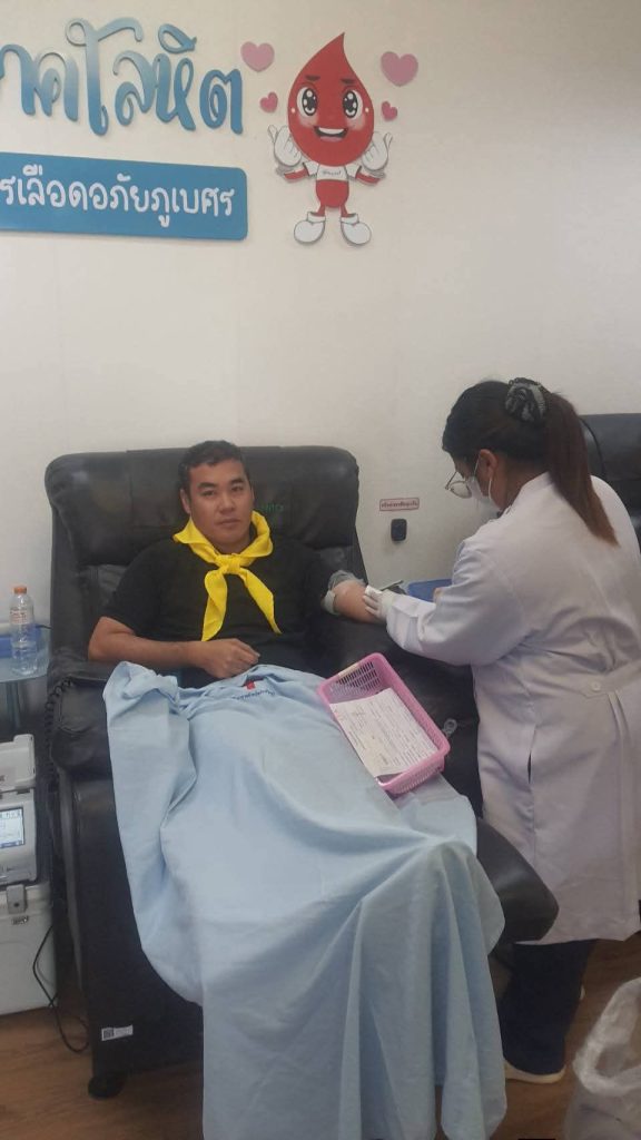 กิจกรรมจิตอาสา ประจำเดือน พ.ย.68 9 มีนาคม 2569 โดย admin / ผลการปฏิบัติงานของ สถานีตำรวจภูธรสระบัว วันศุกร์ที่ 14 พฤศจิกายน 2568 เวลา 09.30 น. ข้าราชการตำรวจ สภ.สระบัว ร่วมกิจกรรมจิตอาสาเราทำความดีด้วยหัวใจ บริจาคโลหิต ณ รพ.เจ้าพระยาอภัยภูเบศร Facebook iconFacebookTwitter iconTwitterLINE iconLine